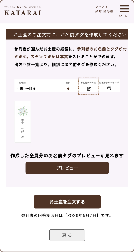 参列者様の回答が出揃ったら、お土産の注文をします。