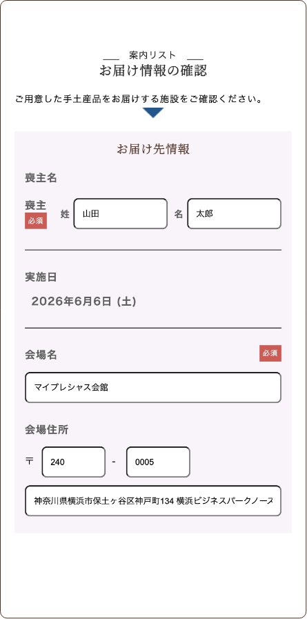 ●お土産のお届け先を確認